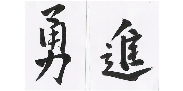 These two mean "courage," and "progress" or "improvement." They can be nice in office--especially a start-up or a new business!